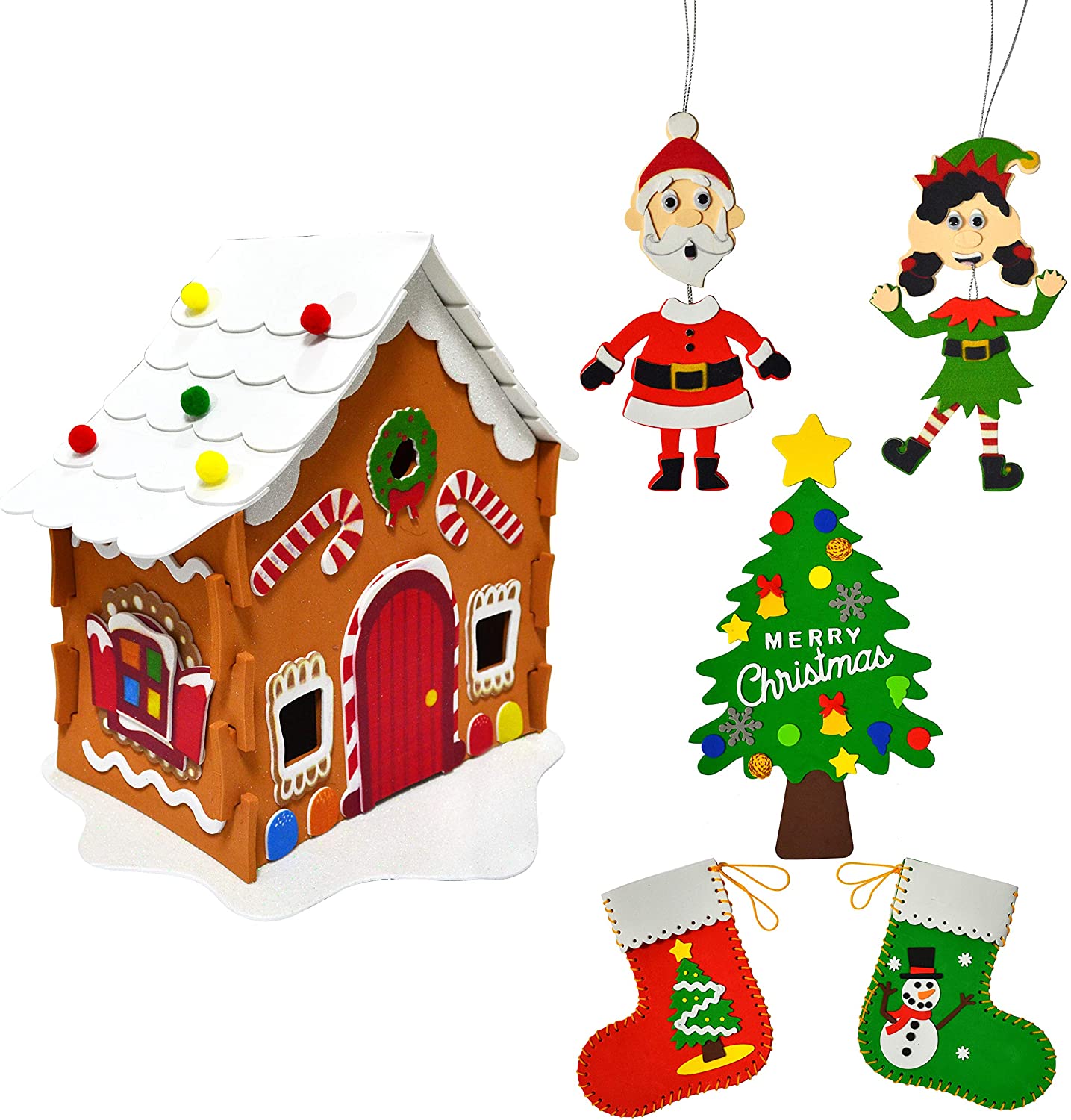 Home Express Christmas Art And Craft Kit Diy With 3d Gingerbread House Christmas Tree Door Sign Foam Stocking Kit Two Characters Decors Kids Boys Girls Activities Project Set Walmart Com
